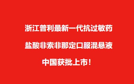 【喜讯】浙江普利最新一代抗过敏药盐酸非索非那定口服混悬液中国获批上市!