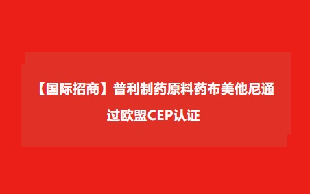 【国际招商】yl23411永利集团原料药布美他尼通过欧盟CEP认证