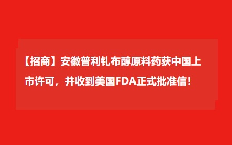 【招商】安徽普利钆布醇原料药获中国上市许可,并收到美国FDA正式批准信!
