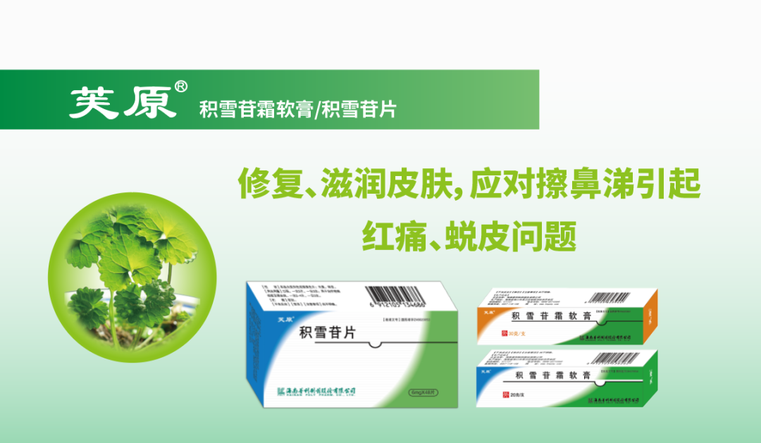 二、对症治疗:可使用温开水清洗面部及鼻部皮肤,并外涂积雪苷霜软膏等消除局部炎症,保护鼻周局部及面部皮肤,从而改善鼻子擦红起皮及皮皮株后整个面部脱皮的现象。研究显示,积雪苷霜软膏在抑制瘢痕增生、修复皮肤损伤方面突显出独特的优势:一方面,可以通过增强细胞的迁移活性,提高伤口愈合率[1,2];另一方面,积雪苷可通过抑制瘢痕成纤维细胞的增殖及胶原蛋白的合成,抑制瘢痕增生[3]。