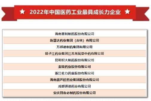 12月18日,“2022年中国医药工业最具成长力企业”榜单在2022年(第39届)全国医药工业信息年会暨2021年度中国医药工业百强榜单发布会暨长三角生命健康产业创新大会上隆重揭晓。
