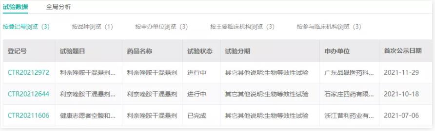 干混悬剂属于口服混悬剂的一种,将难溶性药物与适宜辅料制成粉状物或粒状物,临用时加水振摇即可分散成混悬液供口服的液体制剂。浙江普利药业是首家申报利奈唑胺干混悬剂上市的国内药企。据药融云查询,石家庄四药和广东品晟医药也在开展该品种的生物等效性试验。
